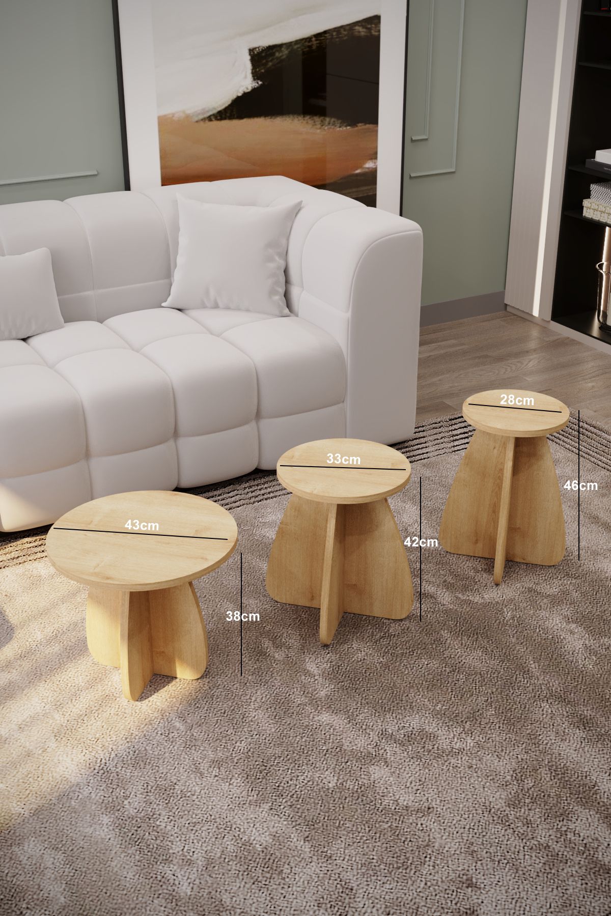 Mantar 3'lü Zigon Sehpa Safir Meşe İskandinav Stili